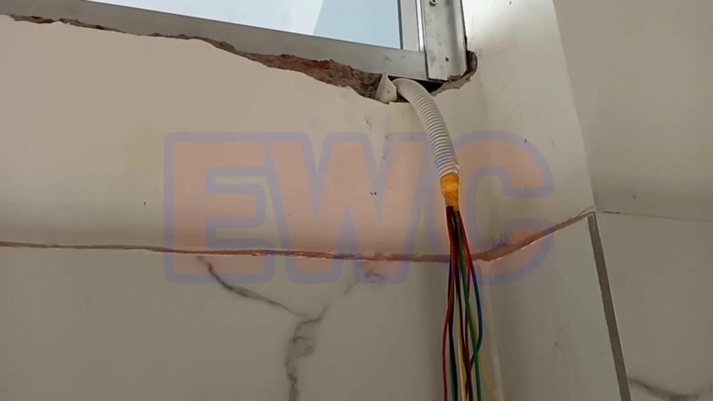 Jha diwal Nhi hota hai aur pipe aur vha Dikhai Nhi Dena chahiye ye jyadatar use Jagah per Hota Hai Jha underground wiring Kiya jata hai vaha Kuchh Jagah per Kuchh Kuchh Karan se diwal per pipe rahata hai vha Deval Nhi rahata Hai Ya diwal Hata Diya Jata Hai Kisi Ki khidki ya Kisi Aur Karan se us Jagah per bahut se tarike se wire Dala jata hai ya Lagaya Jata Hai Jaise Kuchh photo video ko dekhne se aapko samajh me aa sakta hai. Niche aapko photo video dekhne ke liye milega