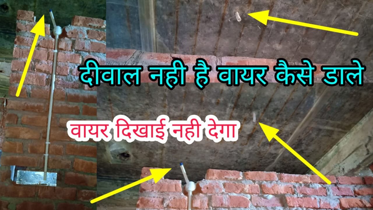 जहाँ पर दीवाल नही होता है और पाइप और वायर दिखाई नही देना चाहिए। ये ज्यादा तर उस जगह पर होता है जहाँ अन्दर ग्राउंड वायरिंग किया जाता है वहाँ कुछ जगह कुछ वजह कारण से जिस दीवाल पर पाइप रहता है वहाँ दीवाल नही रहता है या हटा दिया जाता है किसी खड़की या किसी और कारण से उस जगह पर बहुत से तरीके से वायर डाला जाता है या लगाया जाता है जैसे कुछ फोटो वीडियो को देखने से आपको समझ में आ सकता है। नीचे फ़ोटो वीडियो देखने के लिए मिलेगा।